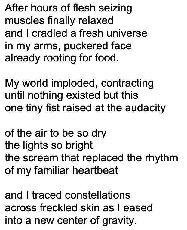 CONTRACTION ~ Gabby Gilliam Click on the player above to hear an audio recording of this work by the author. INSTANT NOODLES: INSTANT! : COVER 4/2024 JUST ONE LOOK IS ALL IT TOOK ~ Gillespie THINGS THAT SOUND LIKE GUNSHOTS ~ Meyer THE SOPHIST ~ Tures WHITE NOIR ~ Fleming SHORT LIVED ~ Das Gupta THAT DAY ~ Lorek with out reflection ~ Bern THE SONG OF NORTH MOUNTAIN ~ Golladay ECLIPSE IV ~ Braun SHORT SPACES OF TIME ~ Doyle MOUNTAIN GIRL ~ Watts TAXING THE LAND ~ Milosch 🎙 CONTRACTION ~ Gilliam 🎙 🎙 DELIGHT AT FIRST SIGHT ~ Fitzgerald 🎙 bears at the trapeze ~ Fleming DEAR USED BOOKSELLER ON DICKSON STREET ~ Elliott 🎙 CRUNCH TIME ~ Flynn 🎙 LONG BEAUTIFUL LEGS SPELL D-A-N-G-E-R ~ Fulcher IN SEARCH OF BASHO’S FROG ~ Petska BREAK IN THE FIELD ~ Elliot AN UNEXPECTED TURN OF EVENTS ~ Towers IMPRESSIONS ~ Das Gupta 🎙 INSTANT ~ Maril 🎙 FIRST IMPRESSIONS ~ Supranowicz BIRTHDAY ~ Hui Sulaiman FALLING FROM GRACE ~ Simon BANANAS ~ Cole 🎙 DOVES IN THE STAGHORN ~ Curtis 🎙 THE BEAR ~ Janicke REALITY CHECK ~ Geisinger SUNRISE AND THE EARTHQUAKE STOPS ~ Milosch 🎙 RUINED ~ Block 🎙 🎙 THE SENSITIVE KISS ~ Fitzgerald 🎙 SPARKLERS ~ Stetz CYBERTRUCK DENTAL, S. de R.L. ~ Hoppin RECIPES FROM MY GARDEN ~ Maril OCEAN ROLL ~ Schwei LIFE IS IN THE WAYWARD WIND ~ Supranowicz IMPRESSIONS ~ Das Gupta BIOS IN AN INSTANT! (just add H2O)