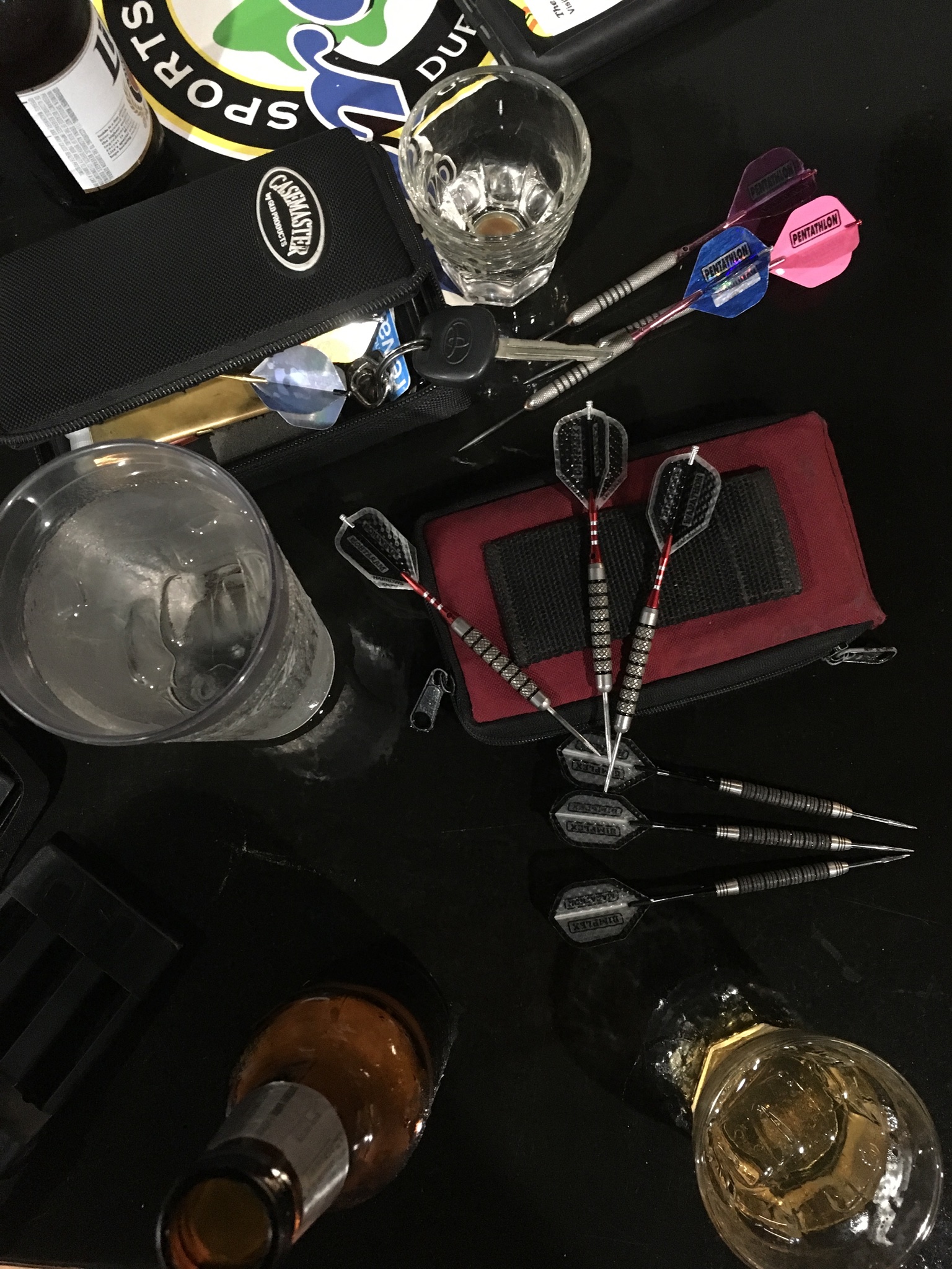 I was hanging out drinking beer and throwing darts at my local pub when the devil walked up and asked, Wanna play a game? I knew he was a regular and I didn’t trust him, so I replied, Sure, but not for my soul. He said, How’s about for a drink then? I agreed and we commenced to play.
